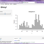 샤이니패키지는 최신 웹 브라우저를 사용하여 인터랙티브한 데이터 정리와 질의를 믿기 어려울 정도로 쉽게 할 수 잇는 기능을 제공한다. 샤이니 패키지에는 다양한 위젯이 있어 사용자 인터페이스와 인터랙티브 기능을 쉽고 빠르게 구현할 수 있다. 샤이니 어플리케이션이 가진 디폴트 스타일 자체도 간결하고 효과적이지만 확장이 가능할 뿐더러, HTML과 CSS로 만든 사용자 컨텐츠를 쉽게 통합시킬 수 있다. 샤이니 애플리케이션의 기본 기능을 능가하는 기능을 구현하기 위해 자바스크립트나 제이쿼를 합께 사용할 수 있다. 샤이니 패키지 설치> install.packages("shiny")Installing package into ‘C:/Users/JeonJongHee/Documents/R/win-library/3.0’(as..