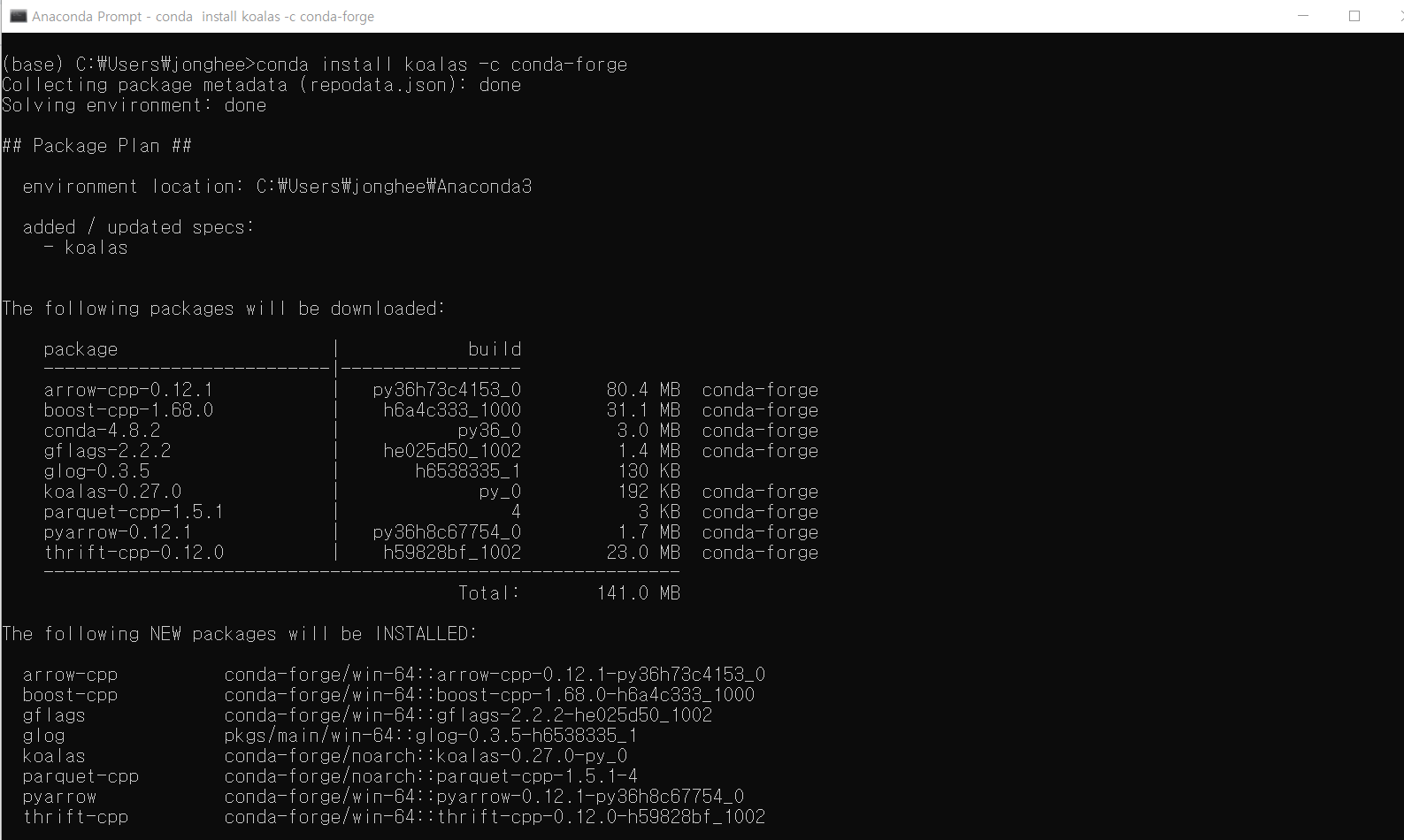 - 기본 conda를 이용한 설치를 권장하고 있음
