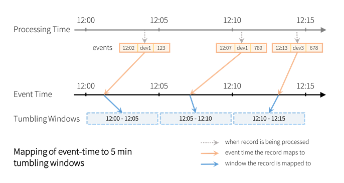 - 이벤트 시간이라는 데이터 기록된 시간 필드를 기준으로 처리